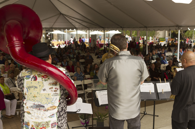 - The Bayou Brass Band plays as attendees gather for the formal presentations during the Festival of Life.